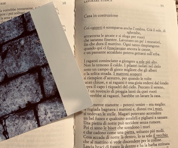 In Lavorare stanca leggo una poesia dal titolo Casa in costruzione. In Pavese sappiamo, bene o male, che le poesie, oltre ad avere uno slancio lirico, vivono di storie minime – cose che succedono, personaggi che parlano e agiscono. Così, nella poesia Casa in costruzione, si parla (se le poesie raccontano e comunicano qualcosa di preciso non perdono in dignità: se non sono pure e non imitano la musica, perseguono altri scopi. Il poeta Pavese scrivendo questi versi nel 1933 – in pieno ermetismo italiano – è un poeta quanto meno stonato. Eppure anche il Montale della Bufera racconterebbe segretamente storie di cui fa emergere creste, comignoli, cime aguzze…), in quella poesia si racconta di alcuni ragazzi che salgono sopra lo scheletro di una casa in costruzione, i pilastri sono a vista, non c’è tetto, i mattoni scoperti, le finestre vuote; i ragazzi stanno lì a guardare il cielo, salgono e scendono sui ponti, lanciano pietre, e non si capisce che altro facciano. Poi c’è un vecchio che sembra trascorra la notte al riparo dei mattoni che al caldo scottano. Dorme lì come fanno i barboni: corre i suoi rischi e s’accende di notte un fuoco.